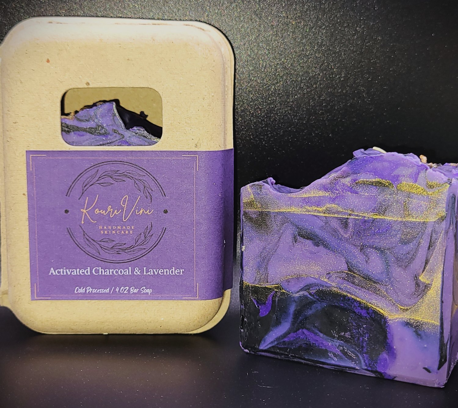 Features activated charcoal and lavender essential oil which makes this bar calming and exfoliating. Charcoal is known to exfoliate without stripping away natural oil, deeply cleanse pores, soothe acne, remove blackheads and shrink pores. Lavender is known to be calming to the senses while also anti-inflammatory, antifungal, antimicrobial, and detoxifying.